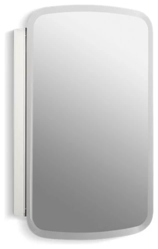 Showcasing a sleek, modern design, this medicine cabinet features a beveled frameless Bancroft door. Mirrors are positioned on the front and back of the door, as well as the interior back of the cabinet. Two adjustable glass shelves hold your toiletries and bath items. Durable aluminum construction makes this cabinet rust- and rot-resistant.