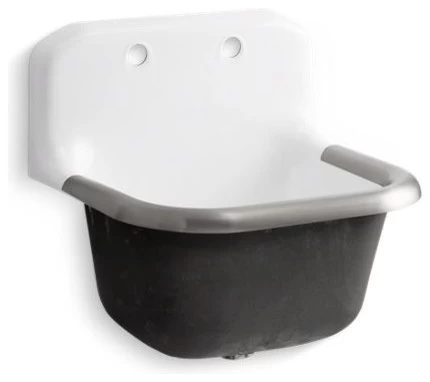 Bring functionality and classic KOHLER styling to your workspace with the Bannon service sink. This deep, single-basin sink is constructed of KOHLER Cast Iron for years of reliable performance, and includes a rim guard for added durability. This model features a two-hole drilling on the backsplash for faucets with 8″ centers.