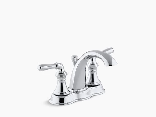 Featuring a classic silhouette, this Devonshire sink faucet complements a variety of bathroom decors. The faucet features ergonomic sculpted lever handles for easy control. A spout and matching pop-up drain with a tailpiece completes the set.