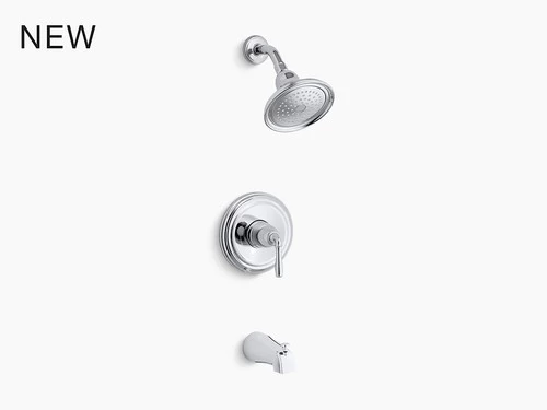 Designed to capture the essence of a bygone era, Devonshire faucets and accessories bring a versatile, traditional style to the bathroom. This bath and shower trim includes a showerhead with Katalyst air-induction spray. By infusing two liters of air per minute, Katalyst delivers a powerful, voluptuous spray that clings to the body with larger, fuller water drops. Pair this trim with a Rite-Temp pressure-balancing valve, which maintains your desired water temperature during pressure fluctuations.