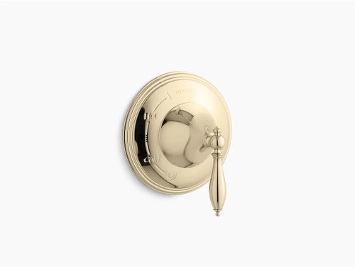 The classic detailing of Finial Traditional faucets imparts an elegant look to your bathroom. This bath/shower valve trim features an ergonomic single-lever handle for simple control. Pair this trim with a Rite-Temp pressure-balancing valve, which maintains your desired water temperature during pressure fluctuations.