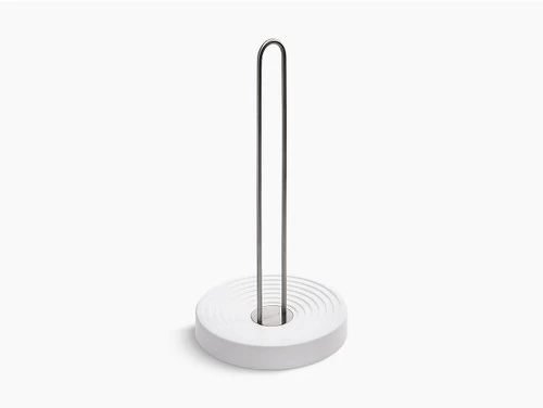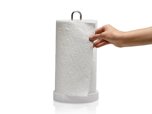 This weighted paper towel holder is designed for easy one-handed tears without tipping or unraveling.