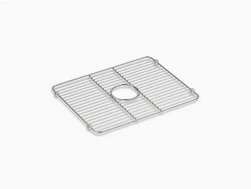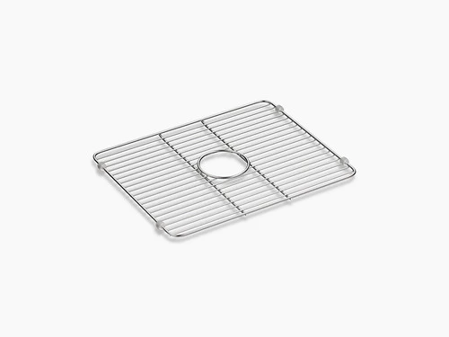 Preserve the beauty of your Iron/Tones sink with a sink rack. A perfect fit for the large compartment, this stainless-steel rack helps safeguard your fragile dishes and protects the sink’s glossy enameled surface. Innovative wheels positioned on the sides of the rack (instead of feet) make for a secure fit to provide stability and make rinsing the sink easier. The wheels are removable, dishwasher safe, and replaceable.