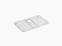 Preserve the beauty of your Iron/Tones kitchen sink with a sink rack. A perfect fit for the single basin, this stainless-steel rack helps safeguard your fragile dishes and protects the sink’s glossy enameled surface.