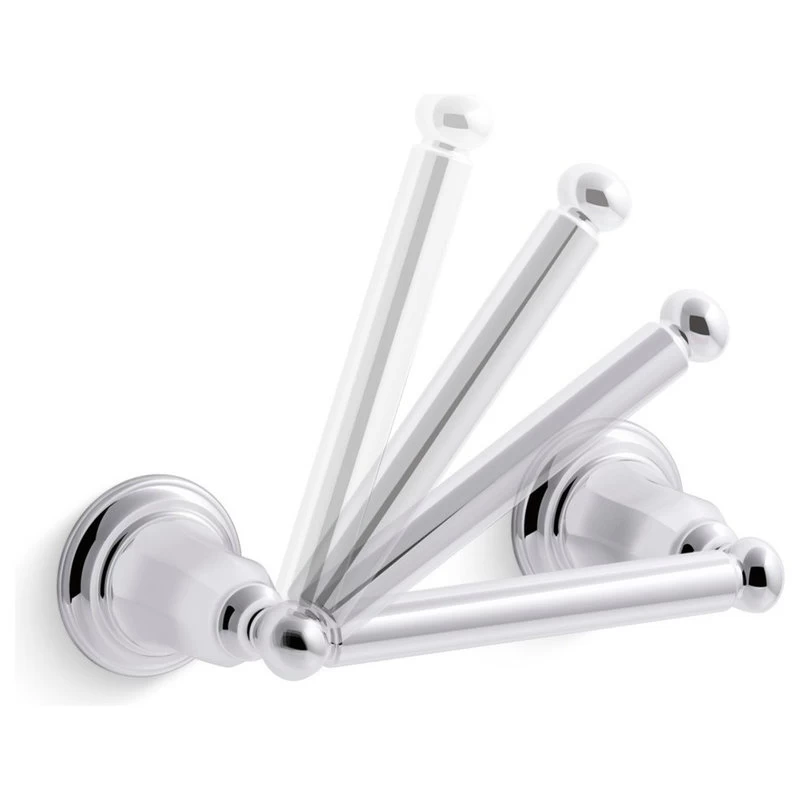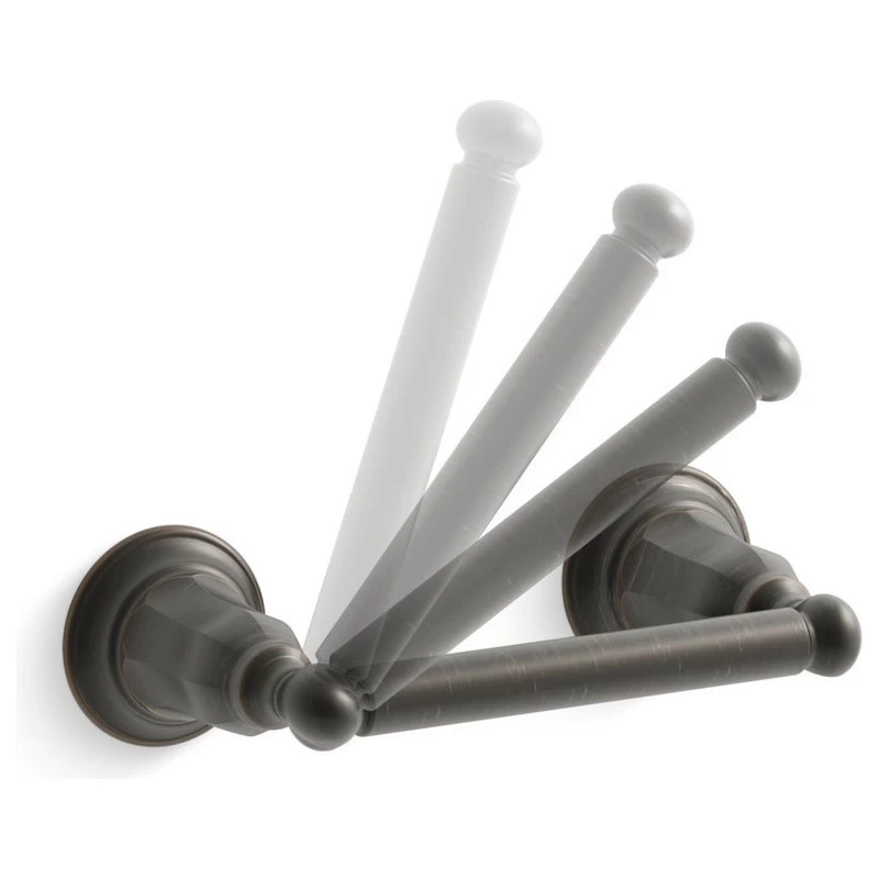Kelston accessories feature a unique blend of traditional and modern design elements that add fresh sophistication and warm elegance to the bathroom. Constructed of durable metal, this toilet tissue holder uses an innovative pivot mechanism that simplifies changing tissue rolls. This stylish design complements faucets and other fixtures in the Kelston Collection.