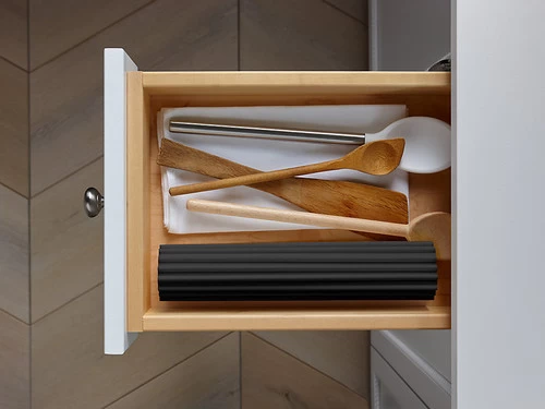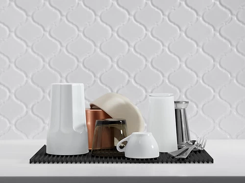 This large, flexible silicone mat provides an extra space for drying dishes and glassware on the countertop. The heat-resistant mat also works well as a trivet. When not in use, simply roll it up and store it away.