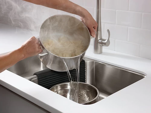 This large, flexible silicone mat provides an extra space for drying dishes and glassware on the countertop. The heat-resistant mat also works well as a trivet. When not in use, simply roll it up and store it away.