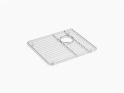 Ensure the long-lasting beauty of your sink with this stainless steel sink rack. Designed to sit inside the left-hand basin of the K-8669 Riverby large/medium sink, this rack helps safeguard your fragile dishes and protects the sink’s enamel surface.