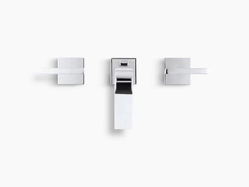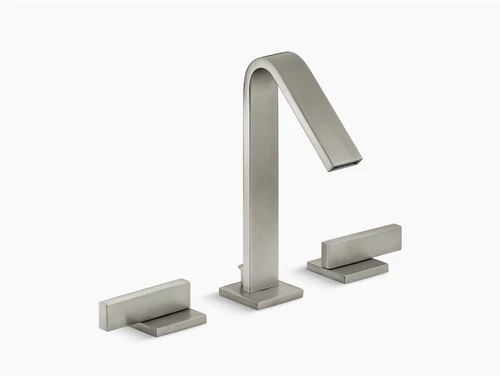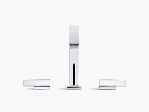- Two-handle widespread sink faucet for 8in – 16in centers features unique recessed valve installation