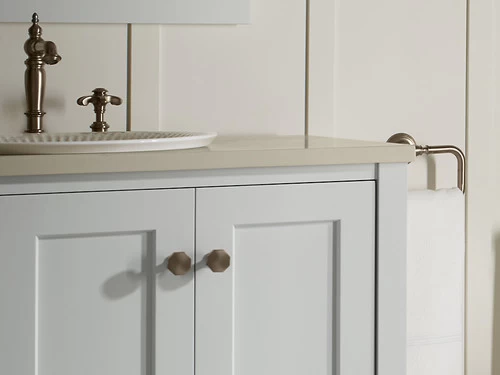 The Pinstripe knob adds functionality to cabinets and drawers while blending in with your bath or kitchen decor. Embodying the relaxed elegance of Art Deco design, this knob features strong lines and striking octagonal contours for distinctive style. Available in an array of KOHLER finishes to compliment any bathroom decor.