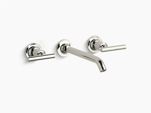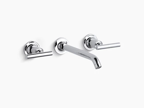 Capturing the style of minimalist design, Purist faucets deliver streamlined water control. This sink faucet trim features a 35-degree angled spout and lever handles for easy operation. The convenient wall-mount design provides a clutter-free countertop in your bath or powder room. When paired with a two-handle ceramic disc valve, this trim offers optimal performance.