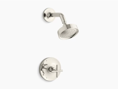 Purist faucets combine simple, architectural forms with sensual design lines. Featuring this modern, minimalist style, the Purist shower trim creates a sophisticated, unified look in your shower. This Purist shower trim includes a showerhead and a faceplate with cross handle. Pair this trim with a Rite-Temp pressure-balancing valve, which maintains your desired water temperature during pressure fluctuations.