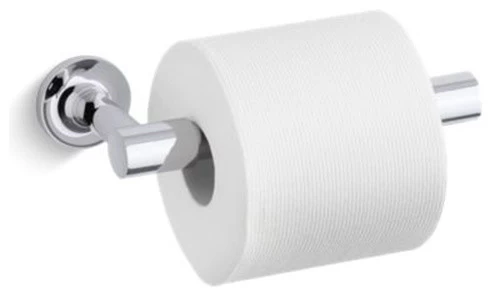 Purist accessories combine a sculptural form with the simple functionality of architectural style. Constructed of durable metal, this toilet tissue holder uses an innovative pivot mechanism that simplifies changing tissue rolls. Available in an array of KOHLER finishes to complement any bathroom decor.