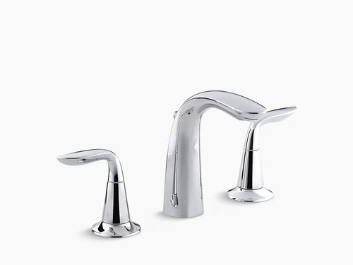- Two-handle widespread sink faucet for 8in – 16in centers features unique recessed valve installation