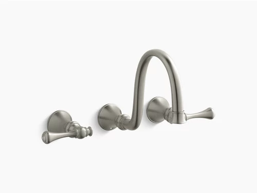 Blending European style and early American influences, Revival faucets and accessories bring continuity to your bathroom design. This bathroom sink faucet trim features a gracefully arched spout and traditional-style lever handles in a space-saving wall-mount design–an elegant choice for vessel sinks or sinks without faucet holes. Pair this trim with a two-handle ceramic disc valve for optimal performance.