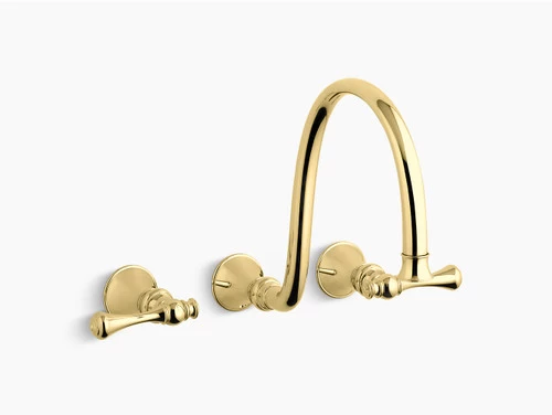 Blending European style and early American influences, Revival faucets and accessories bring continuity to your bathroom design. This sink faucet trim features a gracefully arched spout and traditional-style lever handles in a space-saving wall-mount design–an elegant choice for vessel sinks or sinks without faucet holes. Pair this trim with a two-handle ceramic disc valve for optimal performance.