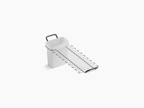Simplify cleanup and customize your kitchen workspace with this utility rack. Custom-fit for select Riverby sinks, the rack is ideal for drying items and keeping sponges and other tools organized and out of the way. It includes a removable soaking cup for utensils.
