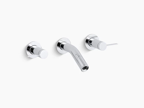 Complete your bathroom sink with this streamlined Stillness faucet trim. This wall-mounted faucet trim captures calm, subtle style with its gracefully curved spout and easy-to-operate lever handles. When paired with a two-handle ceramic disc valve, this trim offers optimal performance.