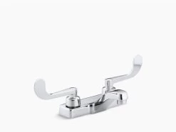 With practical design, solid brass construction and a water-saving 0.5-gpm (gallons per minute) flow rate, this Triton faucet is an exceptional value. Competitively priced Triton faucets feature washerless ceramic valving, a durable Polished Chrome finish and vandal-resistant index buttons. The two-handle centerset faucet with wristblade handles will hold up to years of daily use.