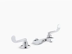 With practical design, solid brass construction and a water-saving 0.5-gpm (gallons per minute) flow rate, this Triton faucet is an exceptional value. Competitively priced Triton faucets feature washerless ceramic valving, a durable Polished Chrome finish and vandal-resistant index buttons. The two-handle widespread faucet will hold up to years of daily use. Select from lever, cross, square or wristblade handle style options.