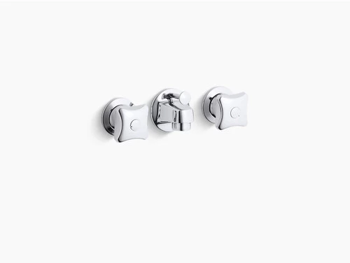 - Two-handle, shelf-back lavatory faucet