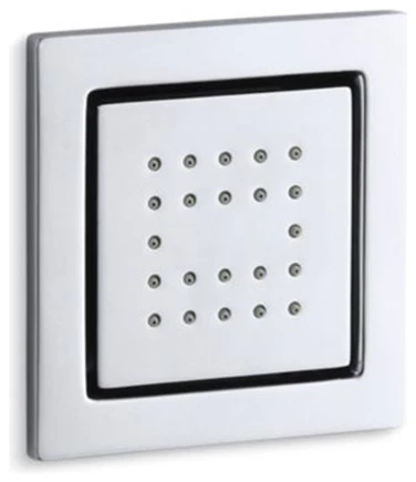 WaterTile body sprays lie virtually flush to the wall and can be placed almost anywhere. This square 22-nozzle configuration delivers a high-volume, invigorating spray for a rejuvenating hydrotherapy experience.
